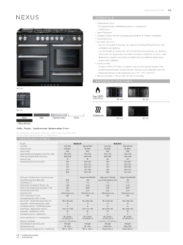 • Kochfeld-Optionen: - Gas: 90 cm Modell: 5 Brenner, inkl. eines 4,0 kW Multi-Ring-Brenners, mit